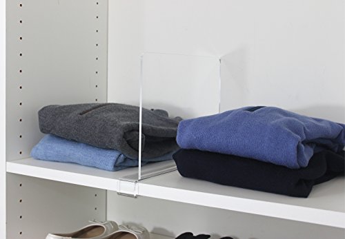 THE SECRET BEHIND A WELL ORGANIZED CLOSET - Since Acrylic is stronger, clearer, lighter and safer than glass, wood or chrome closet dividers, it is sensible to buy our acrylic shelf dividers which make your closet neat, separated and well-organized. Your face will mild up with "smiles" every time you open your closet and discover the whole lot in neat piles!